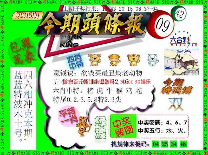 315期:稳赚七肖鸡鼠牛蛇马狗开:虎04对